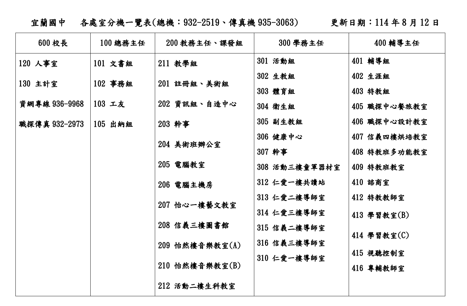 蘭中處室分機